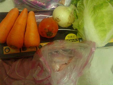 洋荵一個、番茄一個、紅蘿蔔三條。